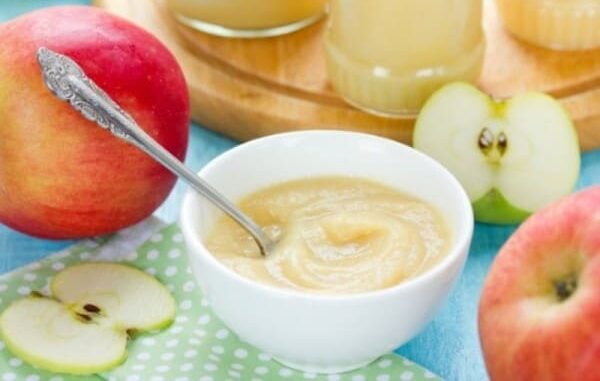 Gọt vỏ táo, hấp chín kỹ rồi dùng thìa nghiền nhuyễn.