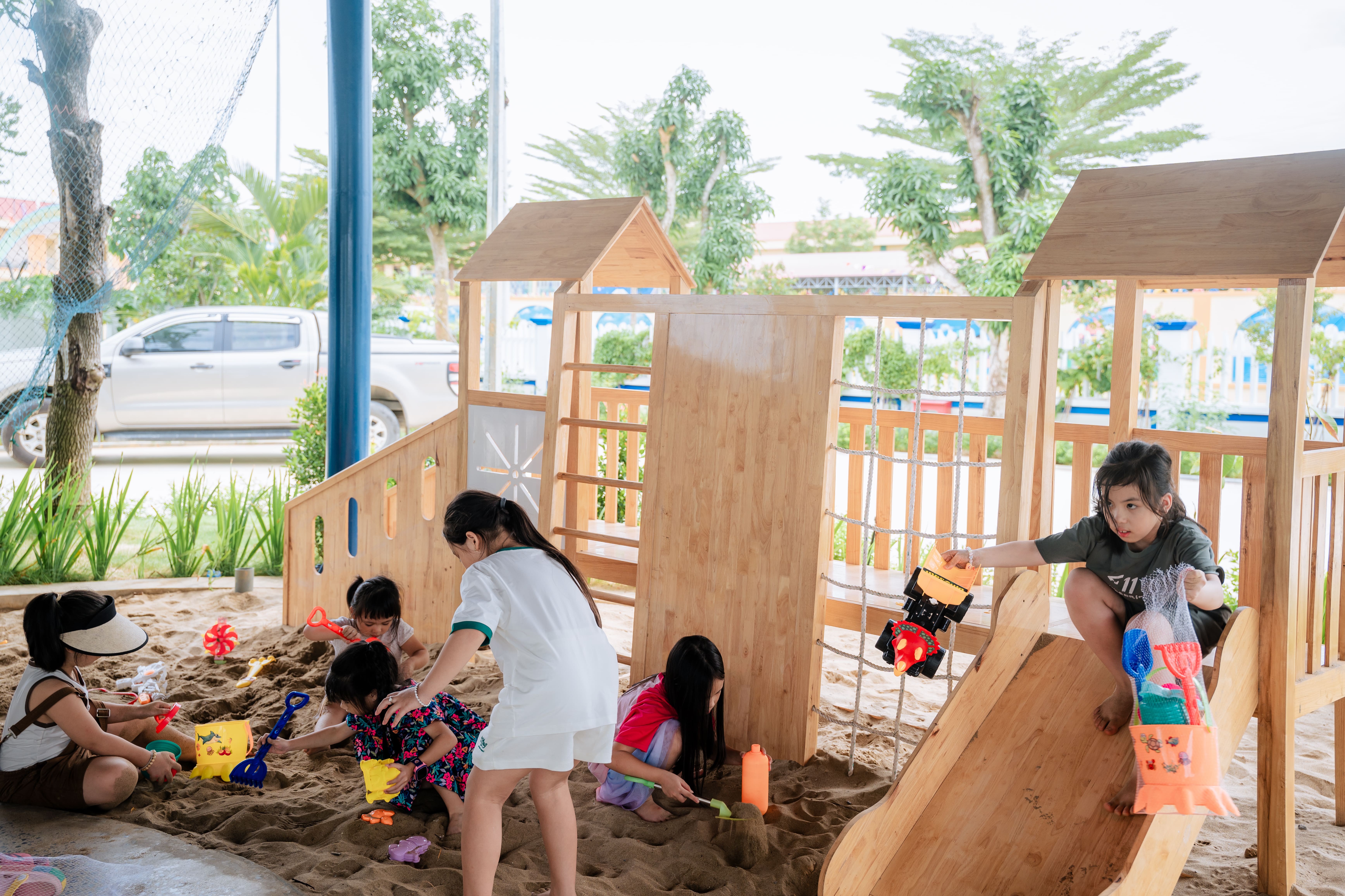 Thêm vào đó, có riêng một khu chơi dành riêng cho bé, bé có thể lái thuyền, chơi cát, chơi cầu trượt trong không gian mát và an toàn. Các loại quả theo mùa, nước uống sẽ được phục vụ miễn phí tại đây.