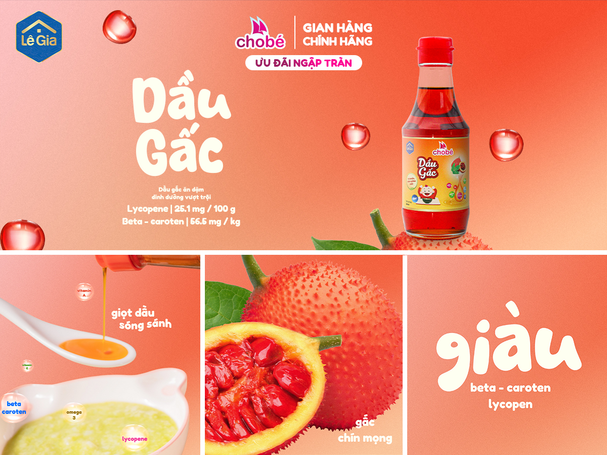 👉 Mẹ có thể thêm một chút dầu gấc Lê Gia khi nấu khoai lang và cà rốt để tăng hương vị và bổ sung Beta-carotene tự nhiên – giúp bé sáng mắt, tăng sức đề kháng.