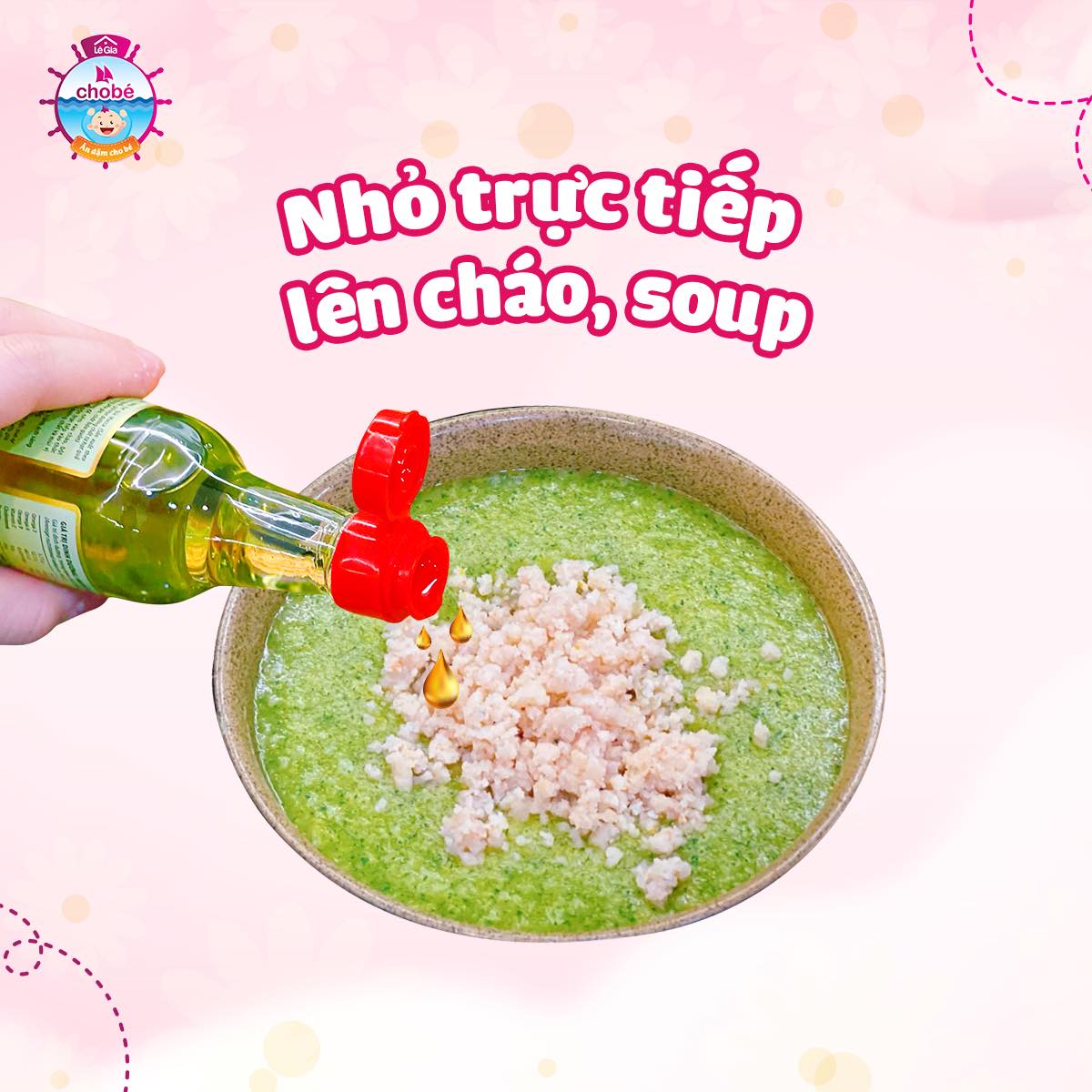 • Gia vị nhạt: bé đã có thể nêm thêm nước mắm dành riêng cho bé, bột nêm tự nhiên, dầu ăn dặm giàu Omega để món ăn hấp dẫn, giàu dưỡng chất hơn.