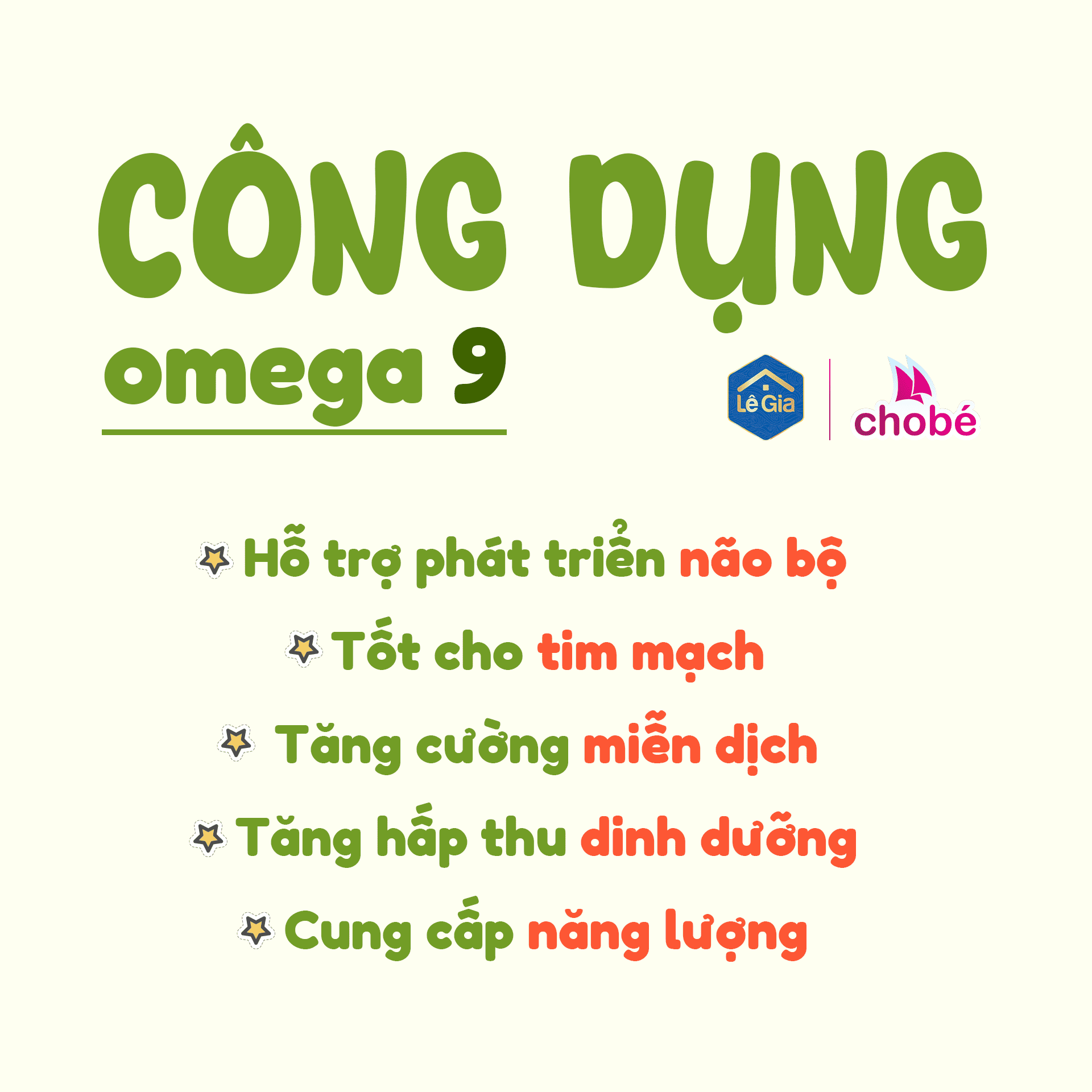 • Giàu Omega 3 – 6 – 9: giúp phát triển trí não, thị giác, tăng khả năng ghi nhớ
