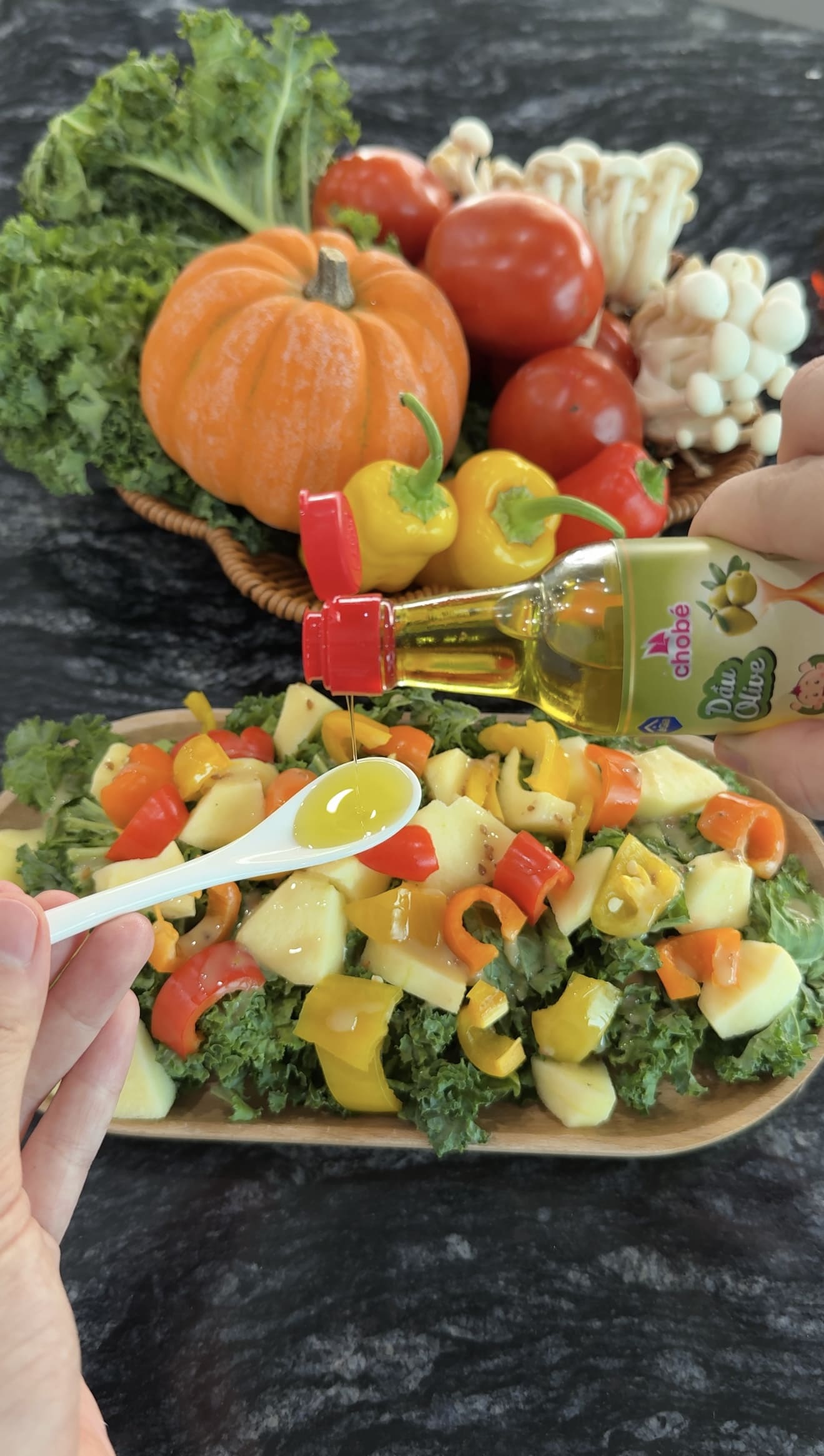 Có thể dùng dầu Olive để làm salad, chế biến món xào nhẹ hoặc tẩm ướp thực phẩm.