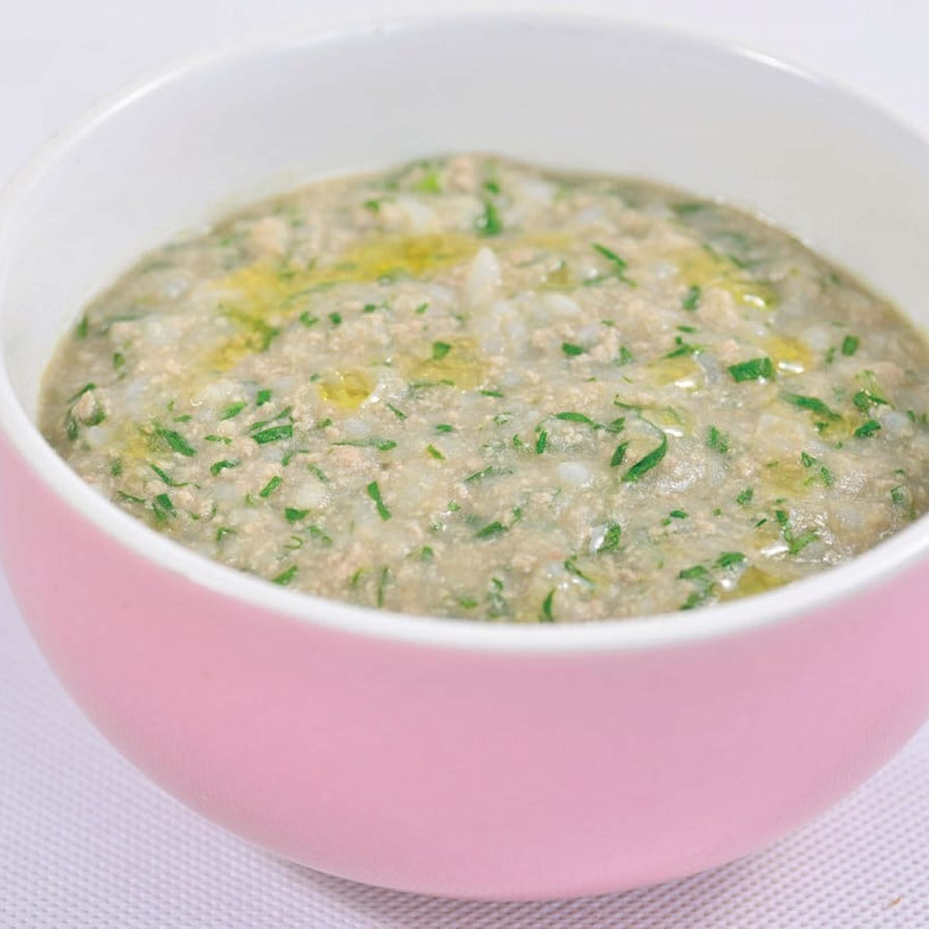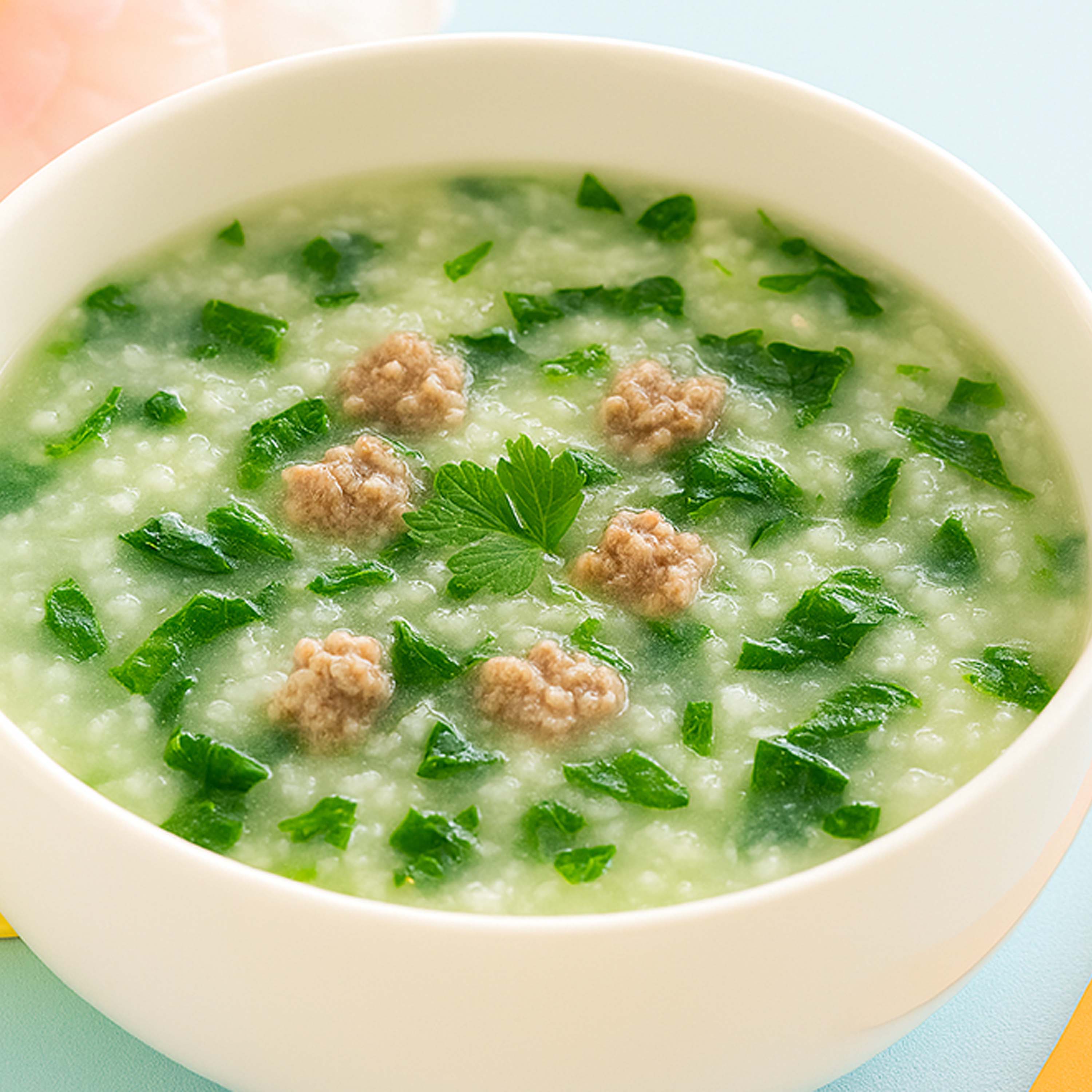 6. Cháo thịt bò rau ngót – Vị thanh mát, nhiều sắt, thích hợp cho bé từ 7–8 tháng, hỗ trợ tiêu hóa.