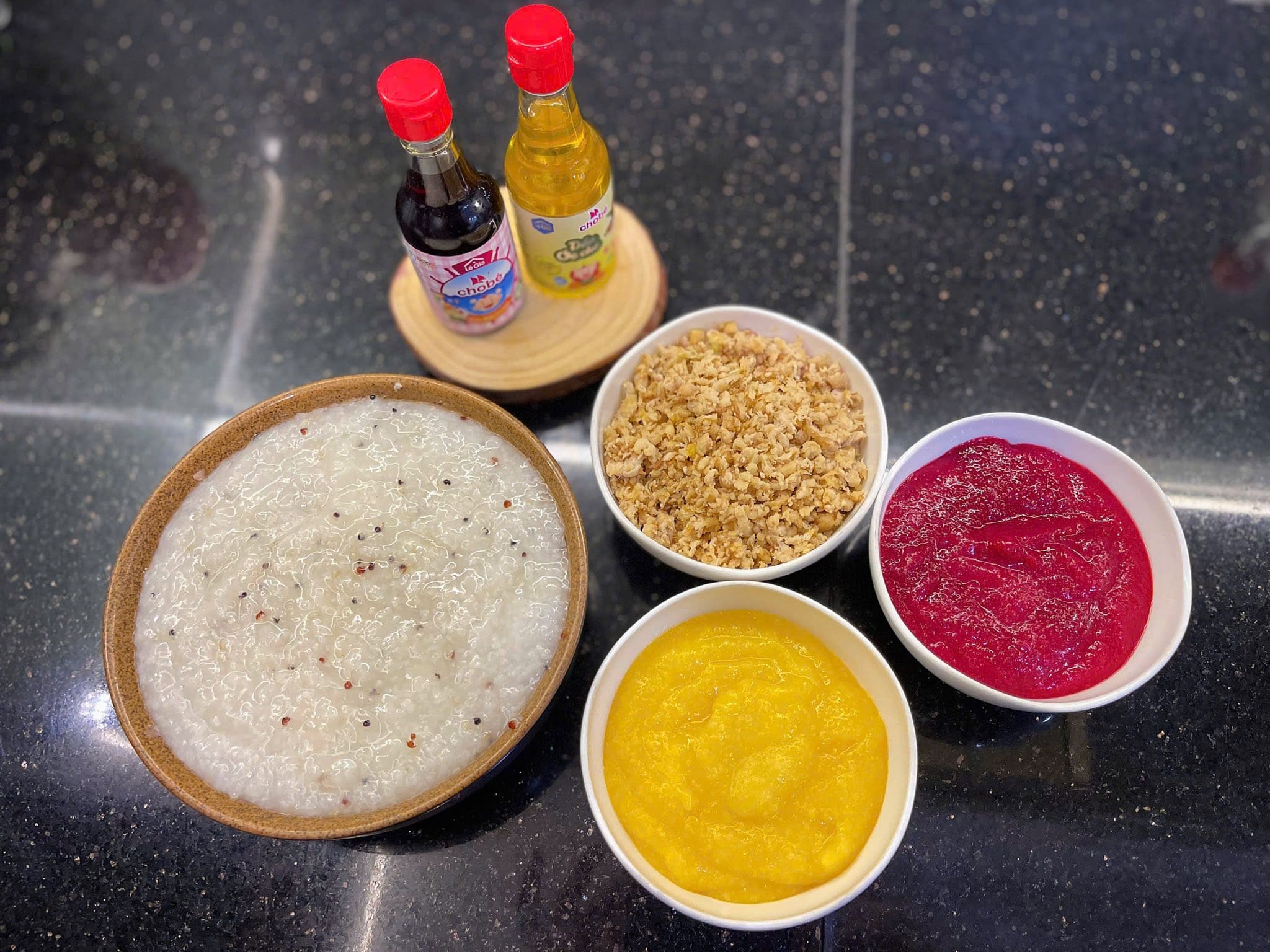 • Đơn giản đến đa dạng: Cho bé làm quen từng loại thực phẩm, tránh trộn quá nhiều ngay từ đầu.