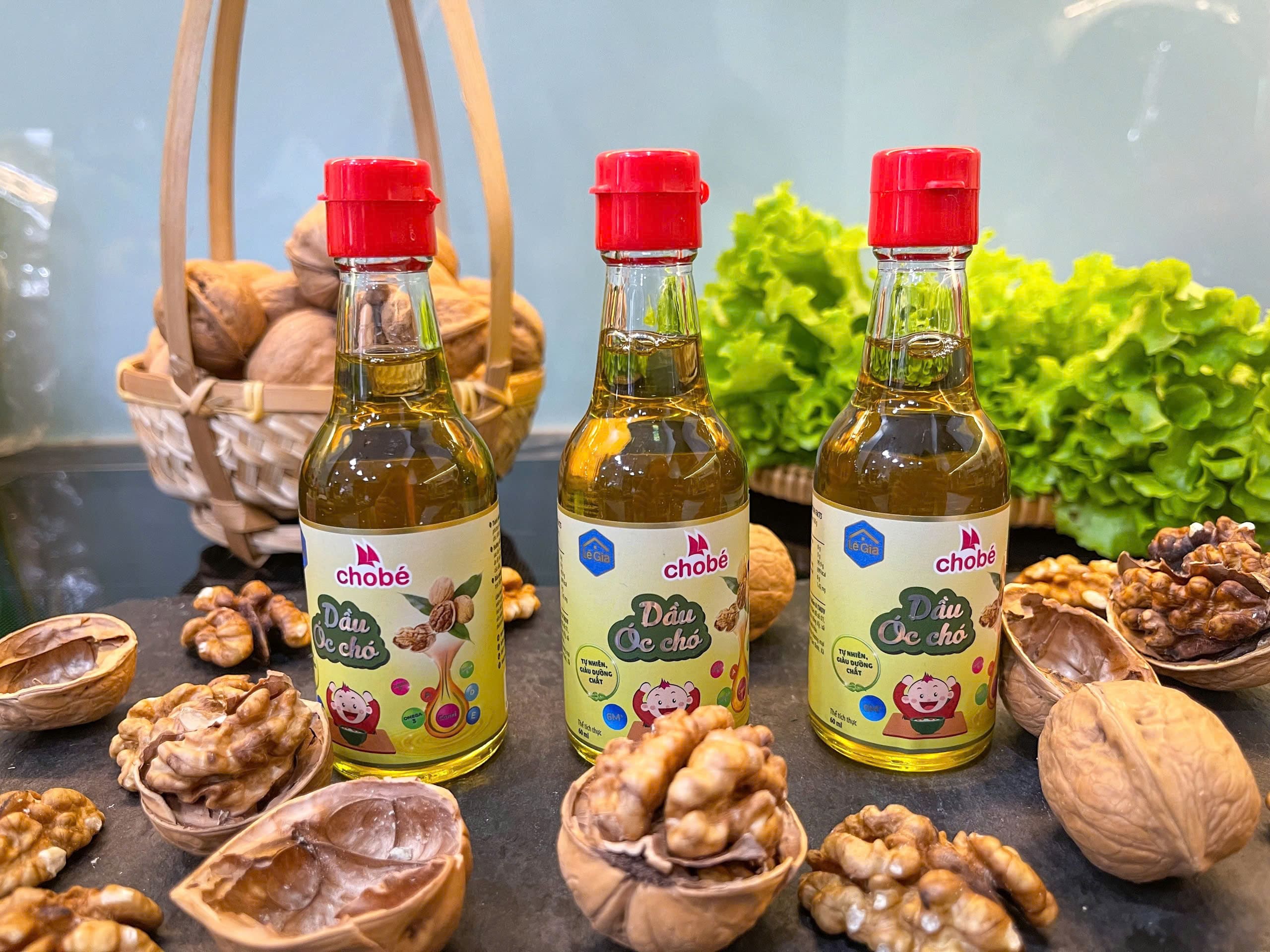 • Chất béo: Dầu ăn dặm từ hạt như dầu mè, dầu óc chó, dầu gấc, dầu macca – giúp tăng cân tự nhiên, hấp thu vitamin tốt hơn.